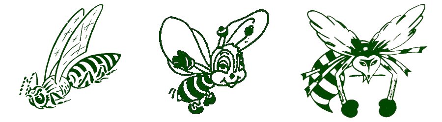 Not having seen all of the yearbooks, I have found thus far four hornet mascots through the years. This history will likely change as I gather more information, but wanted to go ahead and post what I have discovered. The first hornet mascot - the diving hornet, is found in the first issues of "The Stinger" from at least 1956 (and assuming from the beginning in 1950) through around 1960. I have seen a second mascot on the front of 1954 Stinger but do not have a copy as of yet. The third mascot - the happy hornet, reigned from the late 1950s until 1970. In 1971 and 1972, a combination of the third mascot and fourth mascot - the fighting hornet, was used. The last time I have been able to find the happy hornet was in the 1981 Stinger where the diving hornet is also found. I have not seen any yearbooks since 1987 to see if the fighting hornet is the last used or not.